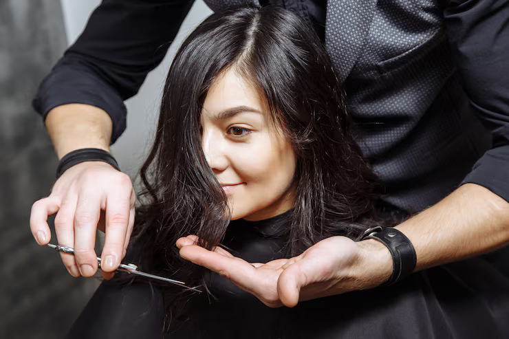 Textured Bangs: To give a softer, more blended look, point-cut into the ends of the hair rather than cutting straight across.